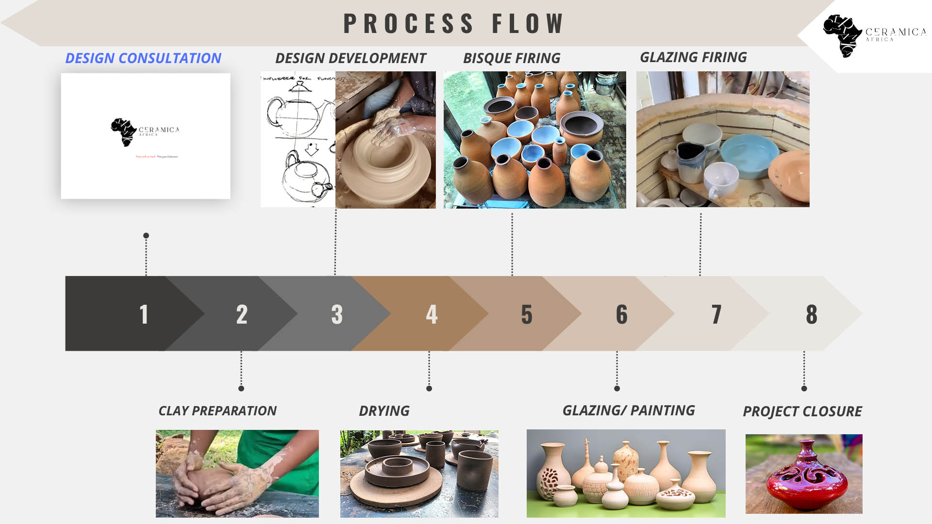 Each piece is thoughtfully designed, drawing from patterns, textures, and natural elements. All our works are made from locally sourced clay, we process then refine, ensuring the highest quality in African clay.